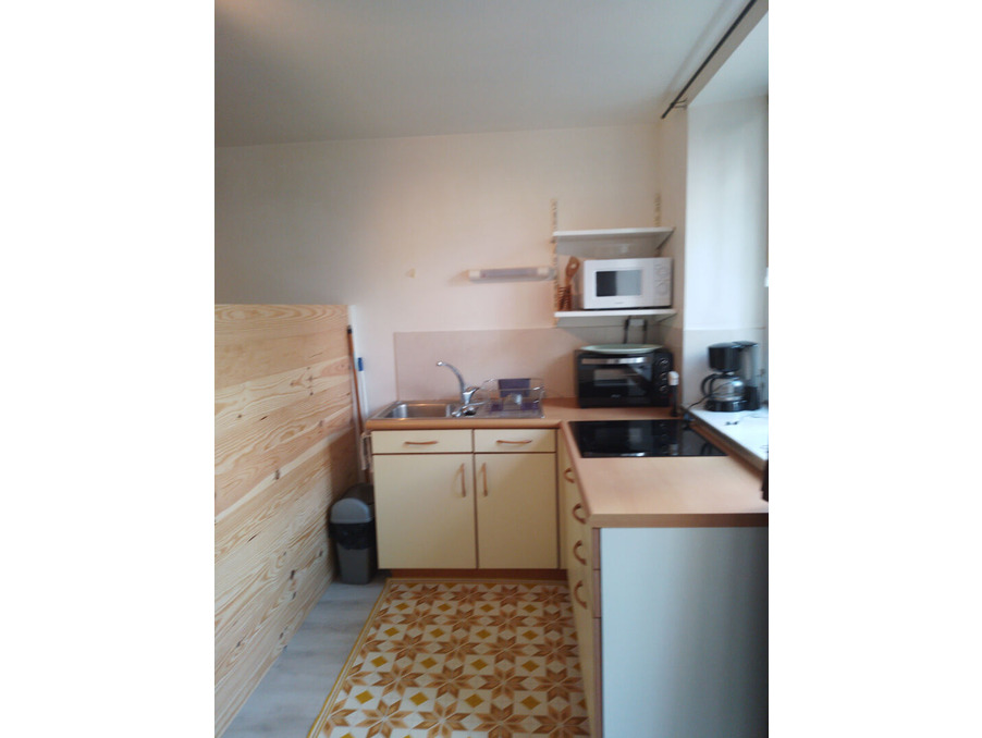FOUGERES : Quartier Hôpital, studio meublé en rdc comprenant un coin cuisine aménagée équipée (four-plaques-micro-onde-réfrigérateur) ouvert sur coin nuit, une salle d'eau avec lave-linge