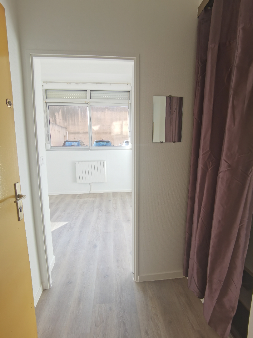 Proche de la gare, COGIR immobilier vous propose ce studio rénové de 15 m² au rdc, comprenant une entrée avec placard, une pièce principale avec un coin kitchenette équipée, une salle d'eau avec WC et placard. Eau froide dans les charges.