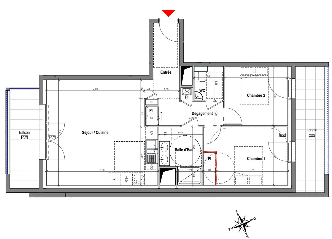 Vous y trouverez ce T3 de 65 m² au 2eme étage comprenant : une entrée, un spacieux séjour/cuisine de 27 m² donnant sur un balcon de 7 m2, une salle d'eau, 1 WC séparé et 2 chambres menants chacune à une loggia exposée Ouest.