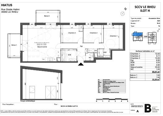 LE RHEU - T4 de 85.41m² avec 2 balcons avec 2 parkings