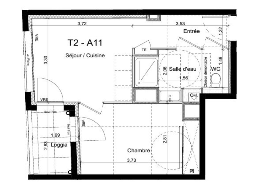 Vous y trouverez ce T2 au 1er étage comprenant : un séjour/cuisine de 16 m² , une salle d'eau, un WC individuel et une terrasse exposée Ouest.