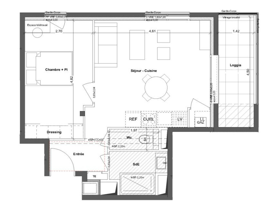 Vous y trouverez ce 2 pièces de 41.63 m² au 2ème étage comprenant : une entrée, un séjour-cuisine de 20.83 m² donnant accès à une loggia de 6.38 m², une belle chambre avec placard, une salle d'eau et un WC séparé.