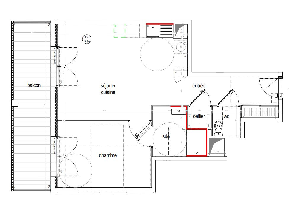 Il se compose d'une entrée, d'un séjour-cuisine et d'une chambre donnant tout deux sur un spacieux balcon d'environ 13 m² , une salle d'eau, un WC.
