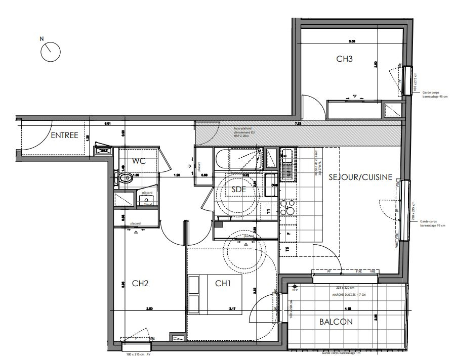 RENNES Rue de Châteaugiron - T4 de 78.41 m² avec balcon et parking