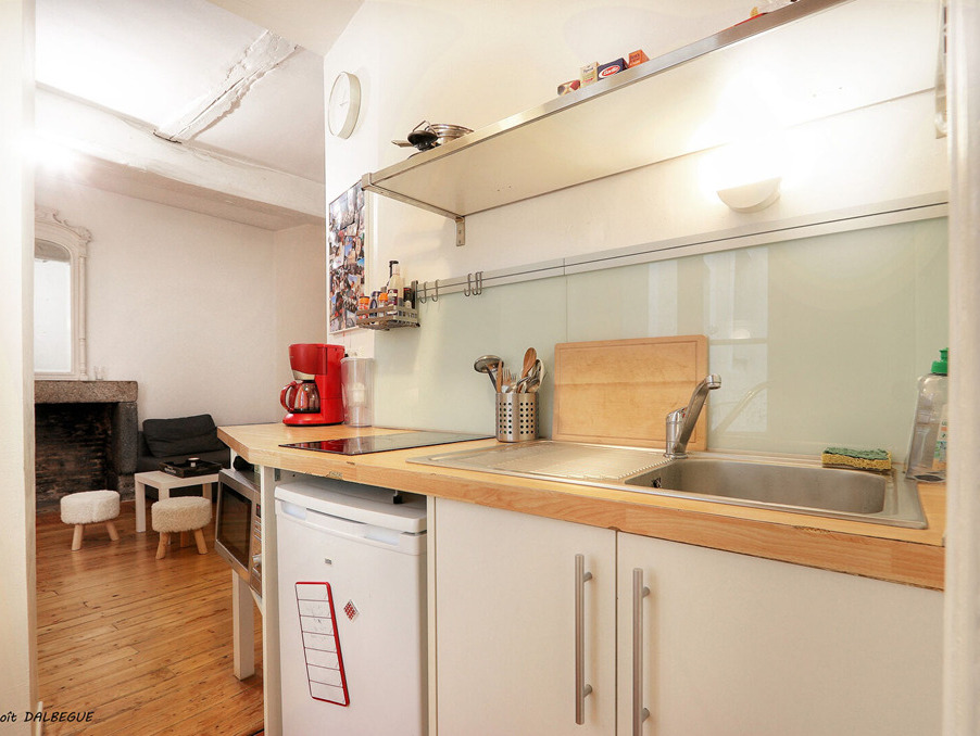 NOUVEAUTE COGIR - EN EXCLUSIVITE - RENNES CENTRE HISTORIQUE - Appartement de charme de type 2 de près de 45m² AU CALME comprenant une entrée, séjour avec cheminée en granit, cuisine semi ouverte, chambre et salle d'eau avec douche à l'italienne, WC séparés.