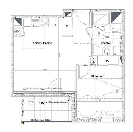 Vous y trouverez cet appartement 2 pièce de 44.15m² au 1er étage comprenant : un séjour-cuisine donnant sur une loggia de 6m² exposée Sud, une chambre avec placard, une salle d'eau avec WC. L'appartement dispose également d'une place de parking.