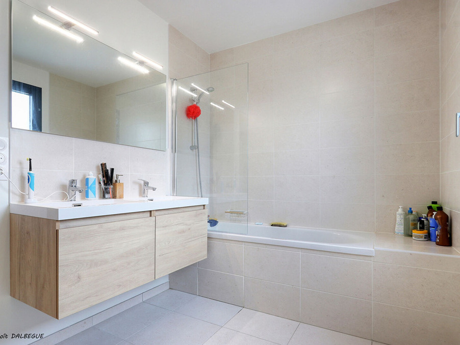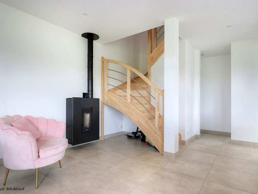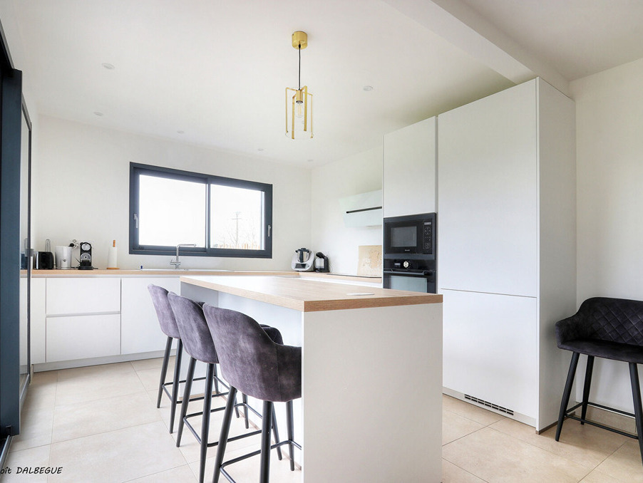 NOUVEAUTE COGIR- Installez vous dans cette maison neuve de 2024! Jolie contemporaine de 115m² avec vue dégagée sur la nature et sans vis-à-vis. Elle vous accueille par une entrée sur pièce de vie baignée de lumière avec poêle à granulé, cuisine aménagée/équipée avec accès terrasse bien exposée, chambre avec salle d'eau pouvant également servir d'atelier avec sa porte fenêtre indépendante sur extérieur, cellier/chaufferie et wc séparé. L'étage dessert 3 belles chambres dont une avec dressing, une salle de bains avec coin buanderie et un wc séparé. Le tout sur 260 m² de terrain et 2 emplacements de parking privatifs - A terminer: terrasse et placards dans les 3 chambres.