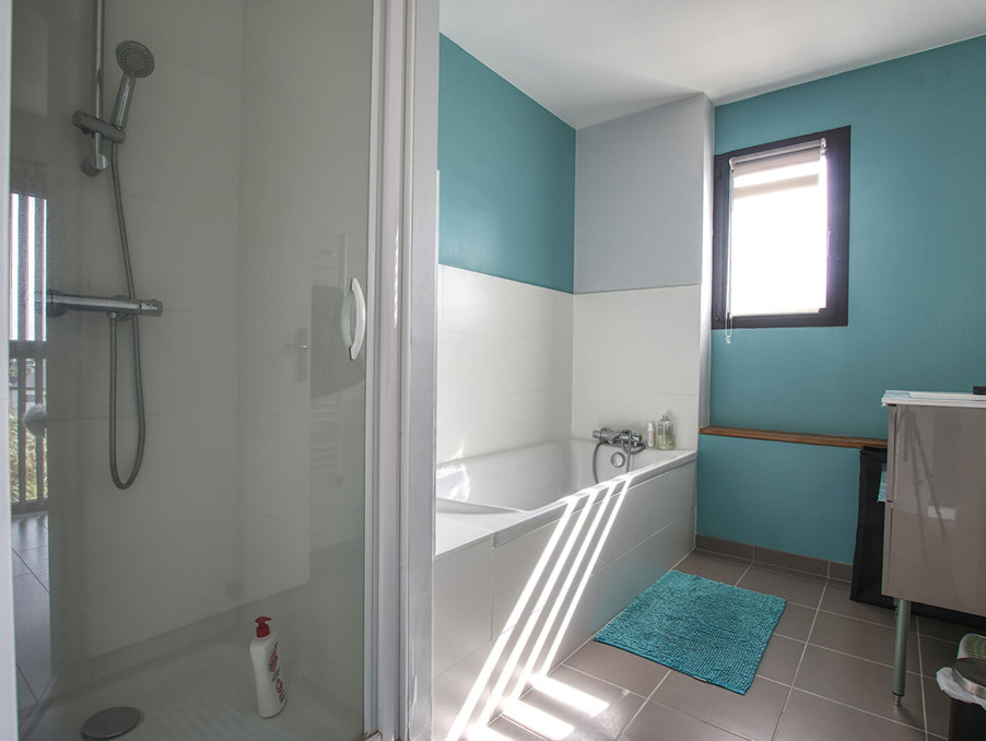 A l'étage : une mezzanine pouvant faire office de chambre d'amis, 3 chambres avec placard, une salle de bains + douche, et un WC.